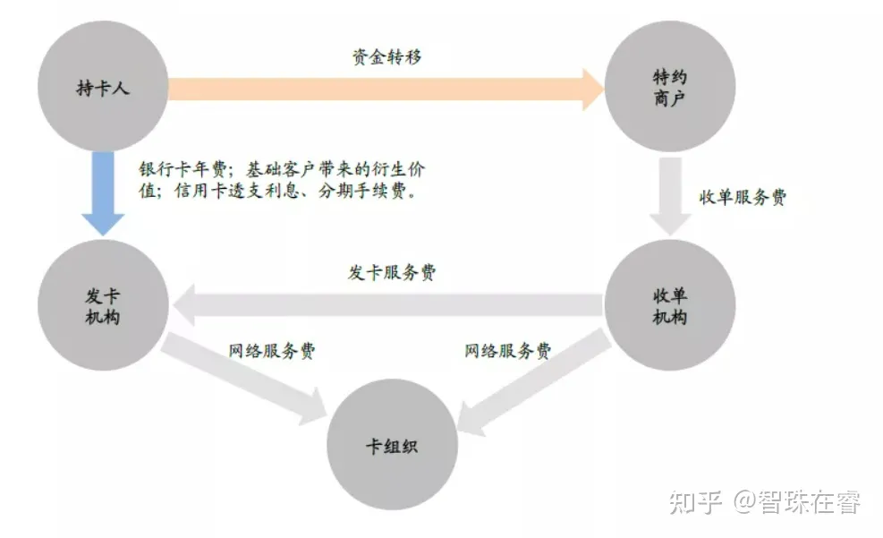 一张图可以看出,卡组织的工作模式就像金融机构之间的基础设施,收取的是交易中的转接交易后的清算的服务费,这里的收费范围:所有交易。
